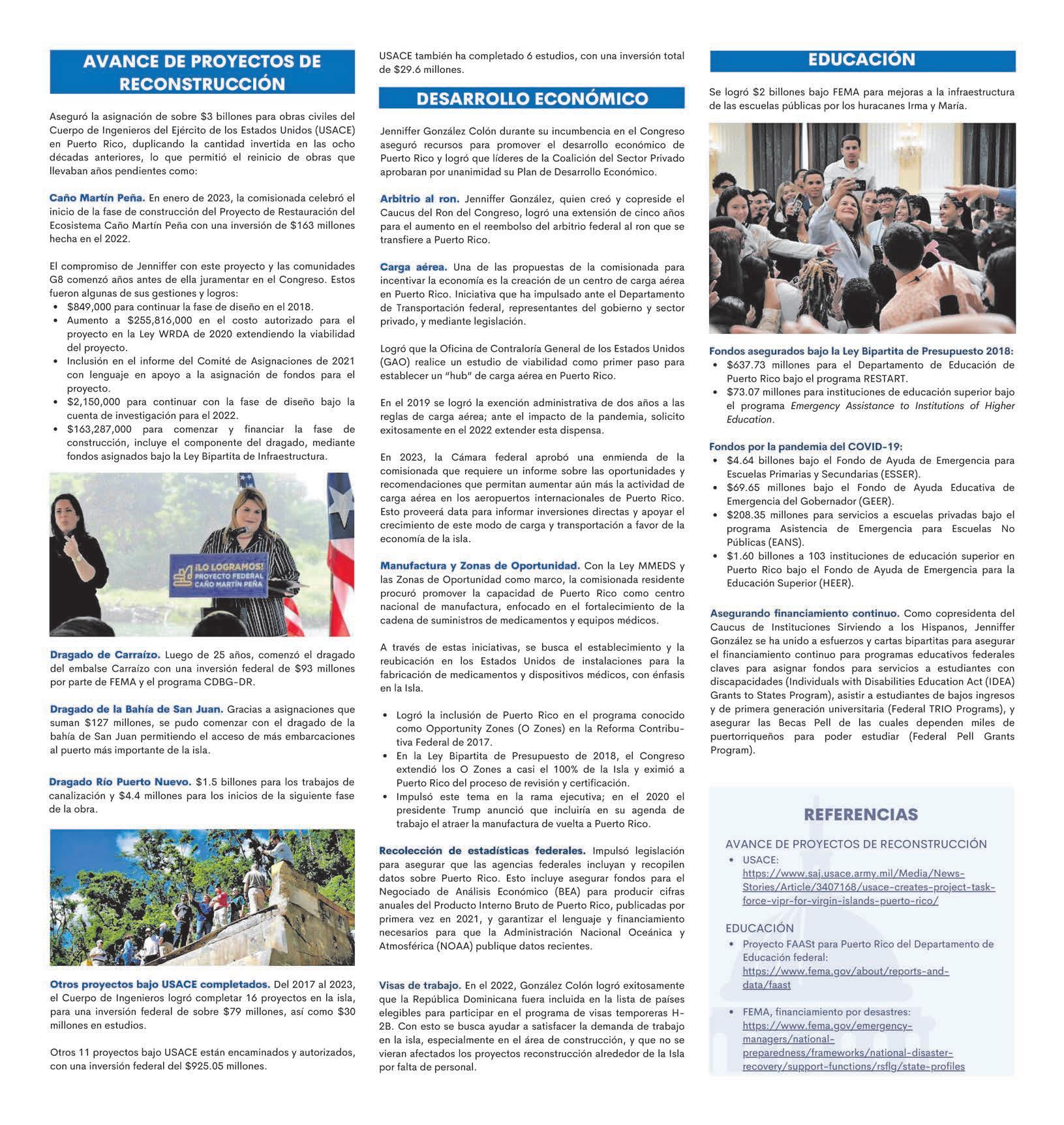 Enel2024fuereconocidaporElCentroLugarylaEscuelaMcCourtdePolíticaPúblicadelaUniversidaddeGeorgetown comolasextacongresistaquemástrabajaenequipo. ha sido la comisionada residente que más visibilidad le ha dado a Puerto Rico en el Congreso