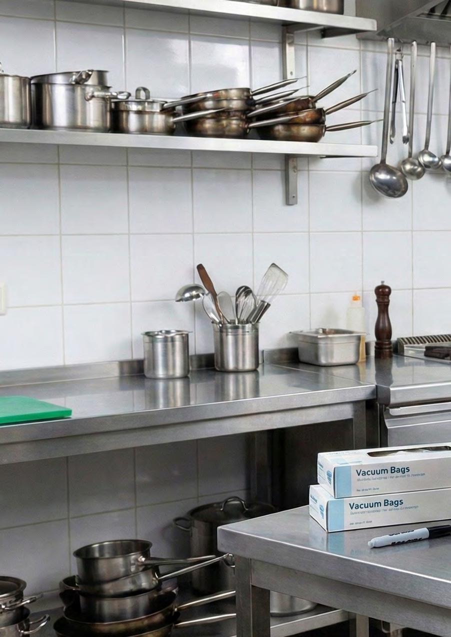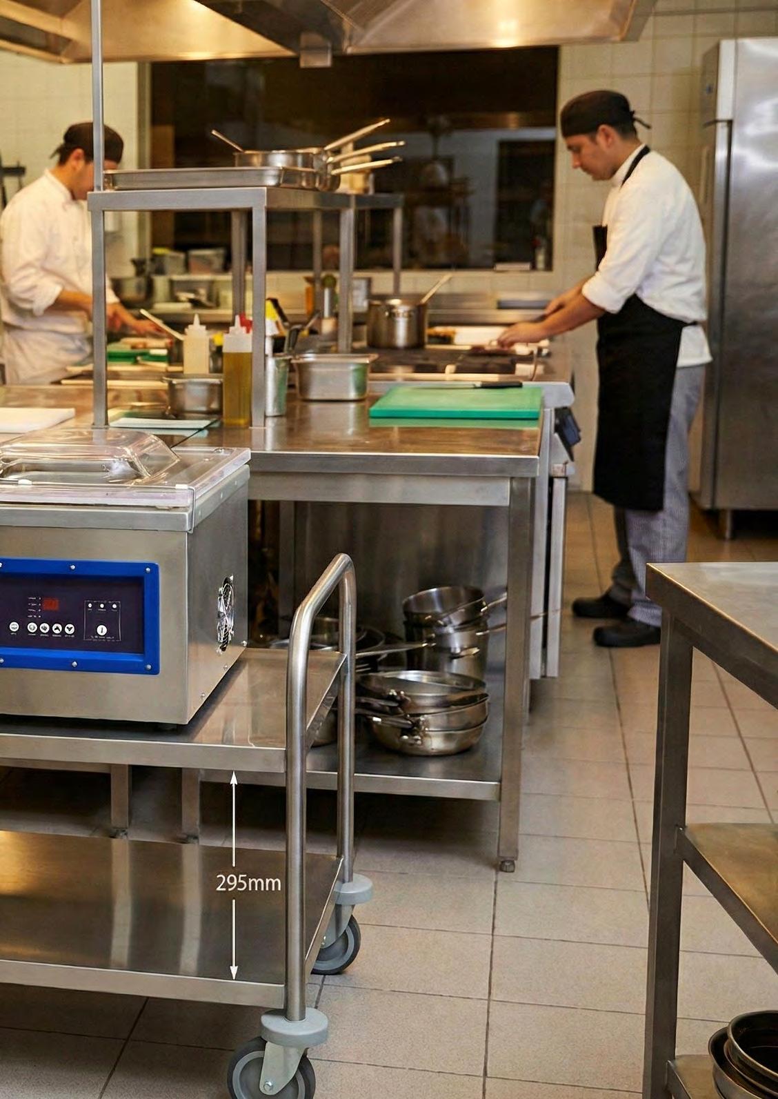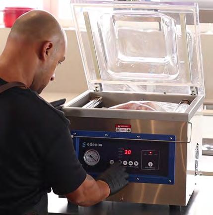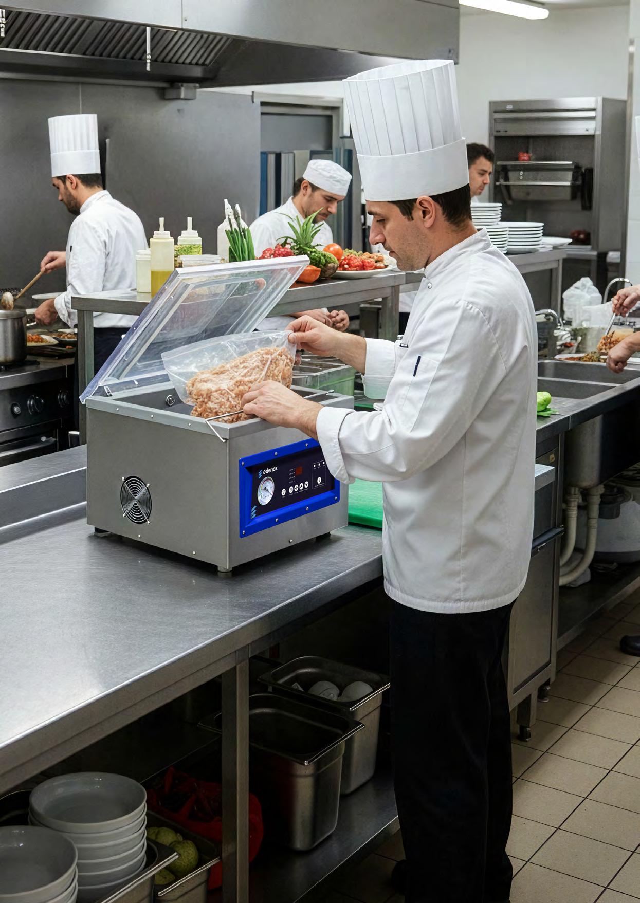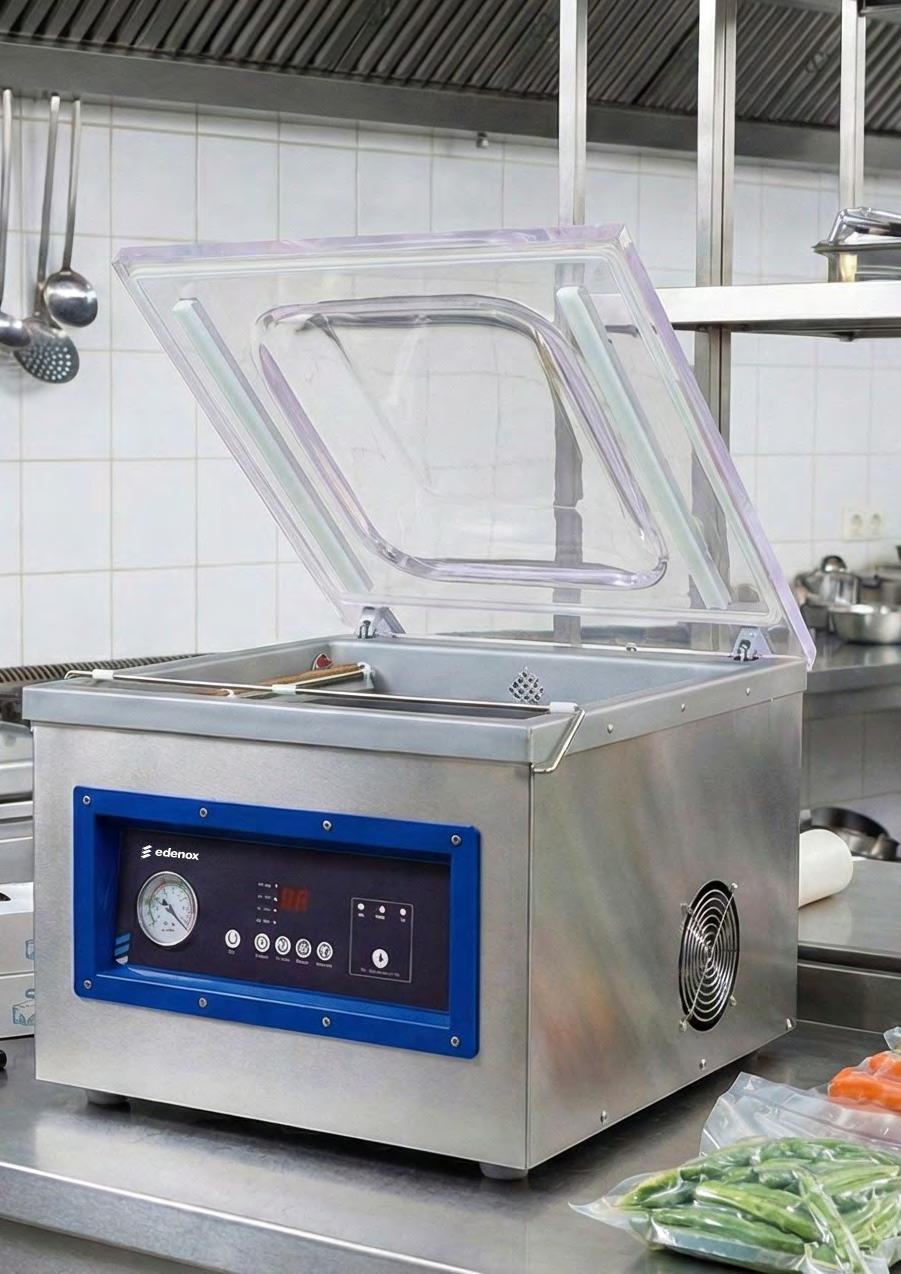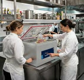 • Perfecta para restauración profesional, cocinas centrales, catering, hoteles y obradores, permitiendo el envasado de carnes, pescados, vegetales, productos delicados, líquidos, semilíquidos o preparaciones sensibles a la oxidación y humedad.