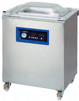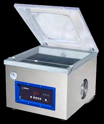 • Envasadoras al vacío controladas por tiempo, con doble barra de soldadura de 400 mm. Cámara en acero inoxidable.