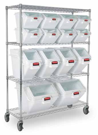 30-Qt removable bins and 10-Qt removable pails offer organization and the ability to pre-stock supplies
