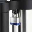 Locking latch for secure lifting and emptying of heavy loads up to 25 lbs
