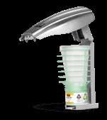 Battery-free dispensers with a recyclable refill that uses air flow to disperse fragrance throughout washroom.