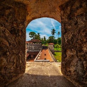 Colonial: El castillo conserva su estructura original con murallas, torres y cañones.