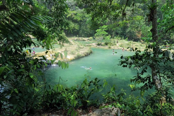 Semuc Champey es un paraíso natural ubicado en la región de Alta Verapaz, cerca de la ciudad de Cobán. Este monumento natural se caracteriza por una serie de piscinas de agua turquesa formadas sobre un puente natural de piedra caliza.