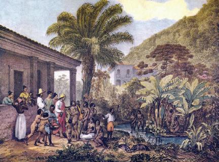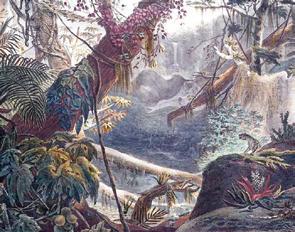 A grande quantidade de espécies encontrada por Darwin quando o navio Beagle chegou aos trópicos o causou deslumbramento. Mais do que isto, a observação da biodiversidade foi essencial para que Darwin questionasse a origem das esp écies. Em outras palavras: como teria surgido tamanha variedade de seres vivos? Quantos deles est ão retratados na pintura de Debret?
