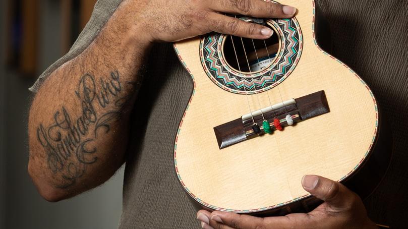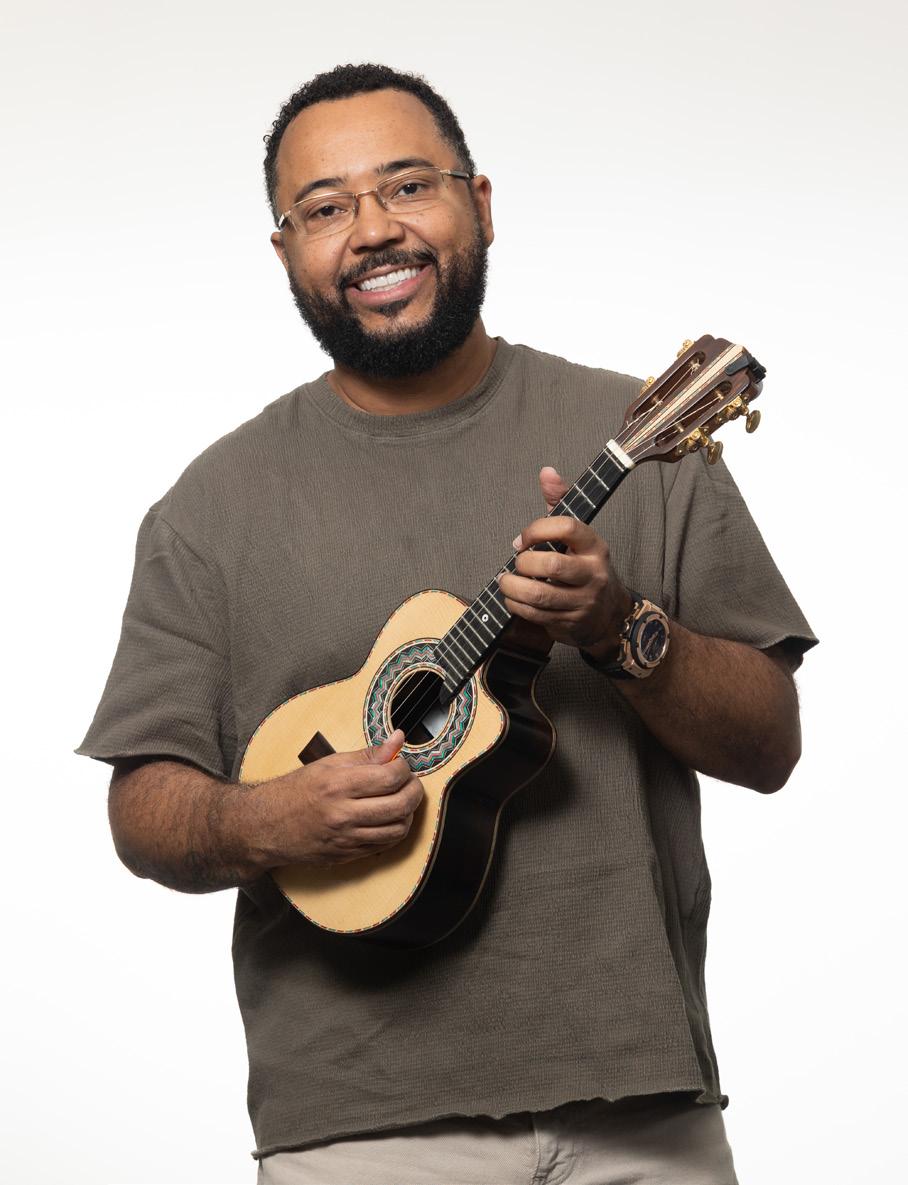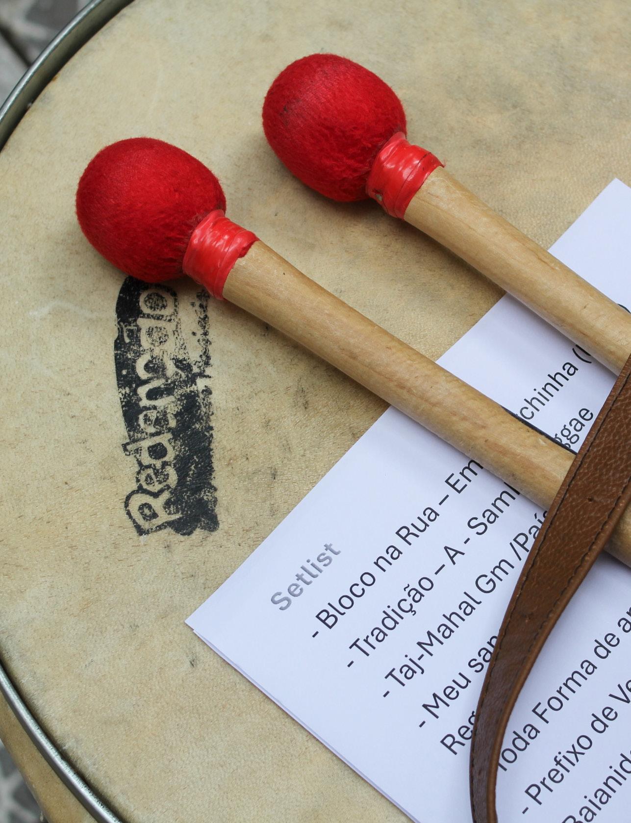 2025) me ensinou a colocar as cordas, o Adilson Victor me ensinou a afinar. Quando começava o samba, eu pegava o instrumento, aparecia um músico e me mostrava uma posição, outros ensinavam a tocar percussão e, quando percebi, já estava tocando, foi muito natural.