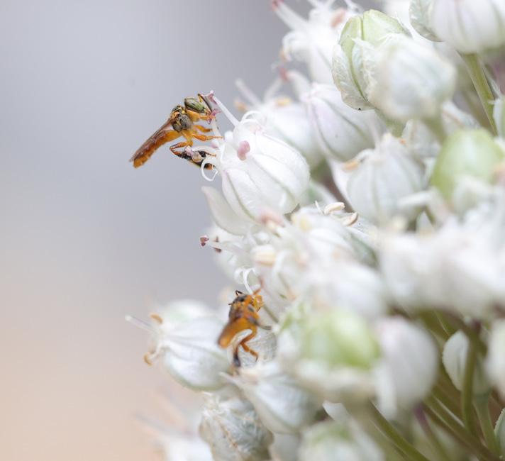 Espécie amplamente conhecida e encontrada em meliponários — locais dedicados à criação, manejo e preservação de abelhas nativas sem ferrão, como os da APA do Carmo —, a jataí (Tetragonisca angustula) é uma polinizadora de plantas nativas e cultivadas, como morango, alecrim-do-campo e angelim. Com cerca de 5 milímetros, possui o corpo amarelo alongado e olhos verdes, o comportamento