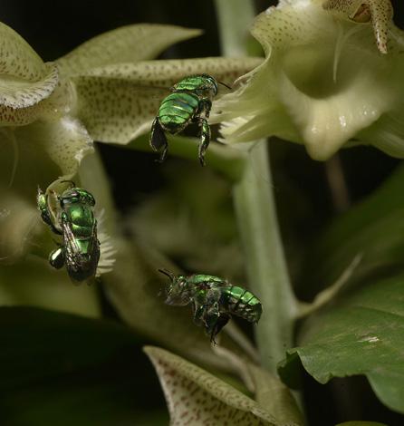 As abelhas Euglossa sp., conhecidas como abelha das orquídeas, são uma importante polinizadora de plantas silvestres e agrícolas.