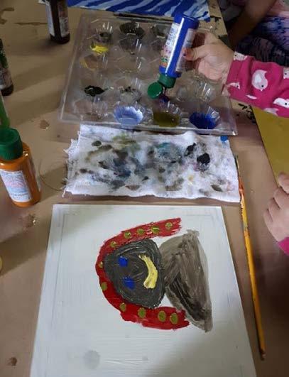 [...] deixo as crianças à vontade, um é diferente do outro. Não fazem cópias, tudo igual não é arte. Eles têm toda a liberdade de realizarem o que gostam.