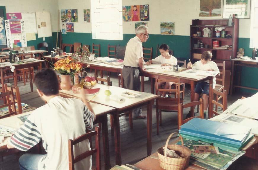 ensinar o que se chamava ‘Movimento de Pintura Moderna’. Na hora da aula de arte, as crianças saiam da sala de aula com os professores para desenhar ao ar livre, desenhavam o natural, depois voltavam para a sala e pintavam. Estudavam também a pintura tradicional japonesa, que tinha a mesma paleta de cor, meio acinzentada, das pinturas do Sawada”.