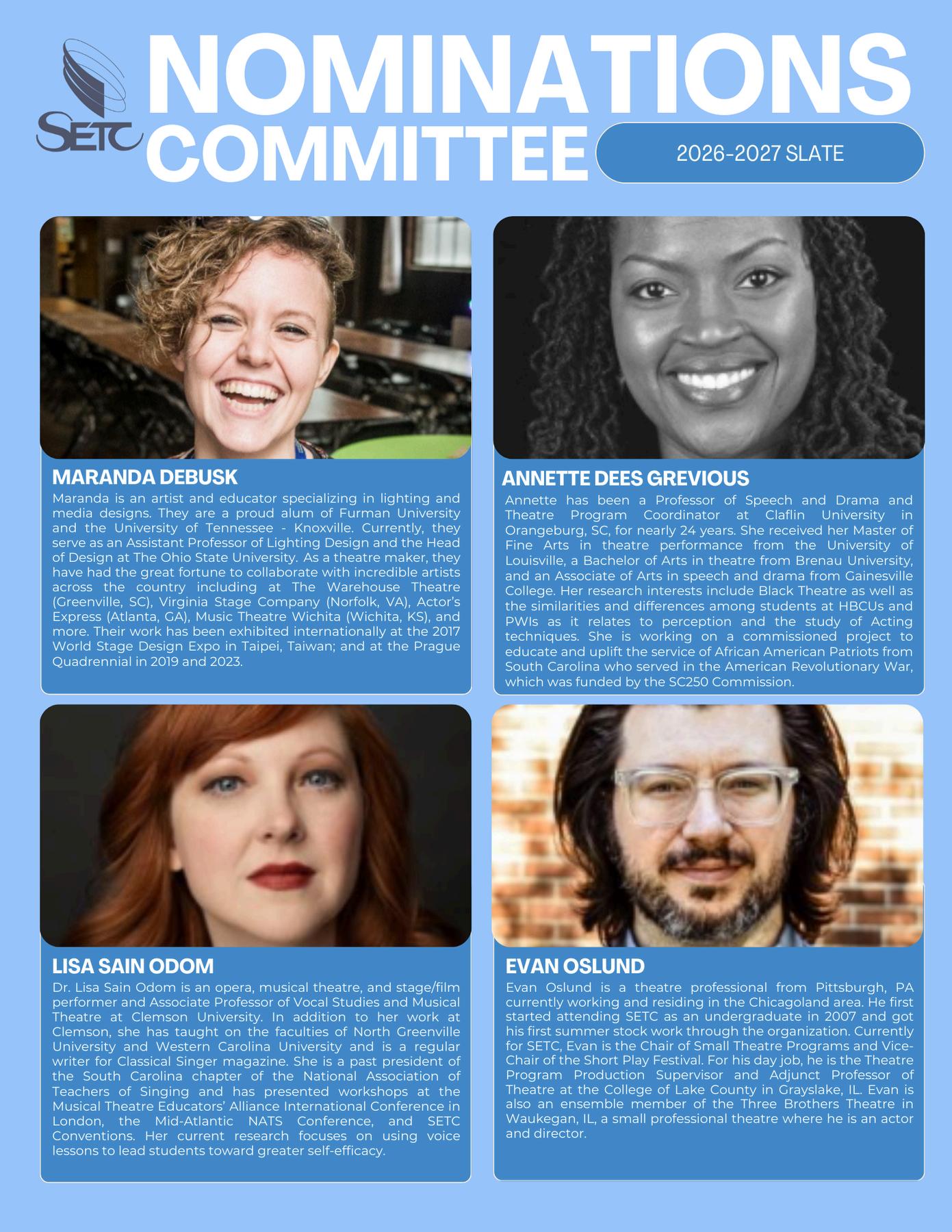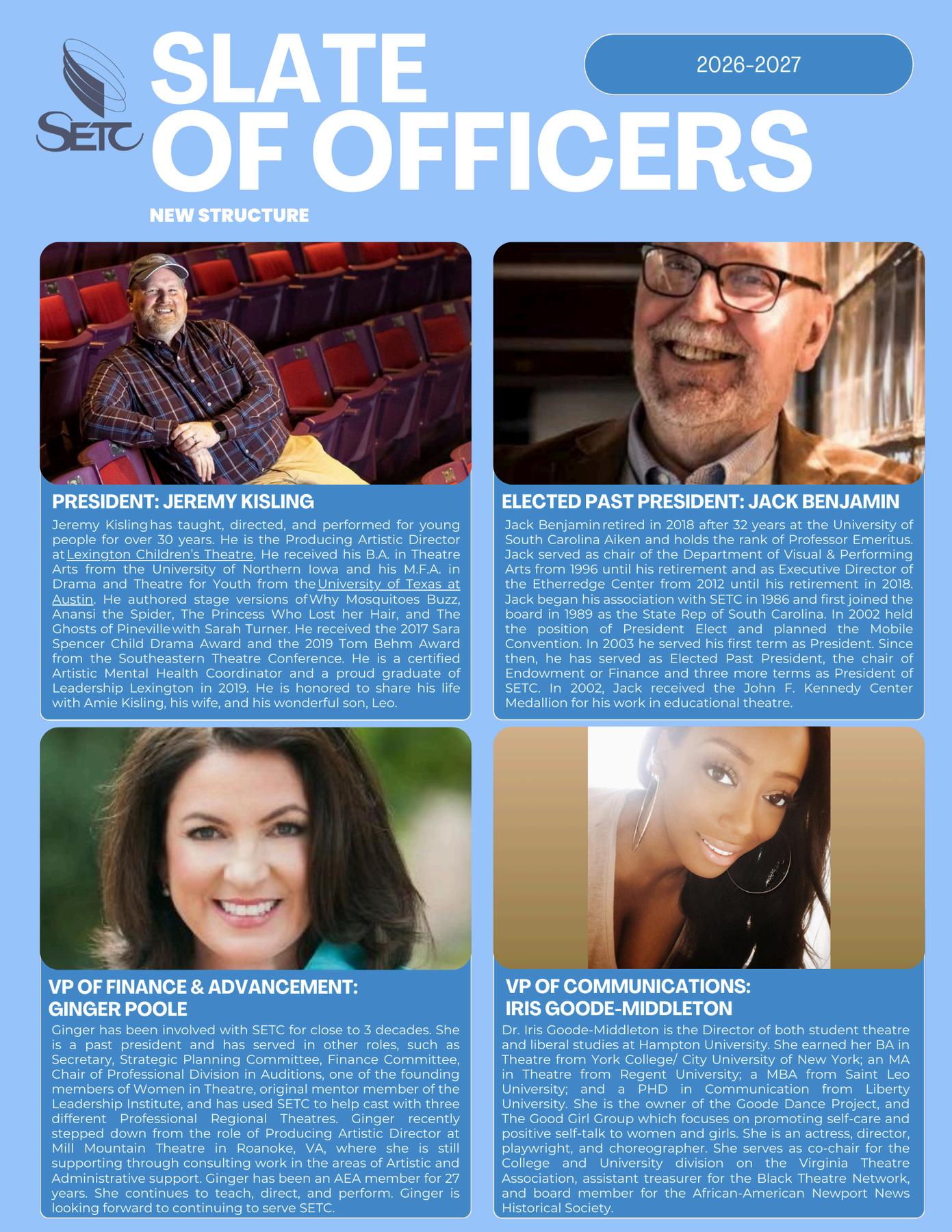 Above all, SETC strives to be a place where everyone feels welcome, safe, and valued. It is a space to refresh your spirit, reconnect with your community, and rediscover your passion for theatre. We are especially excited for you to meet our new Executive Director (announcement coming in February) and to experience Chattanooga through compelling performances, engaging workshops, and thought provoking conversations.