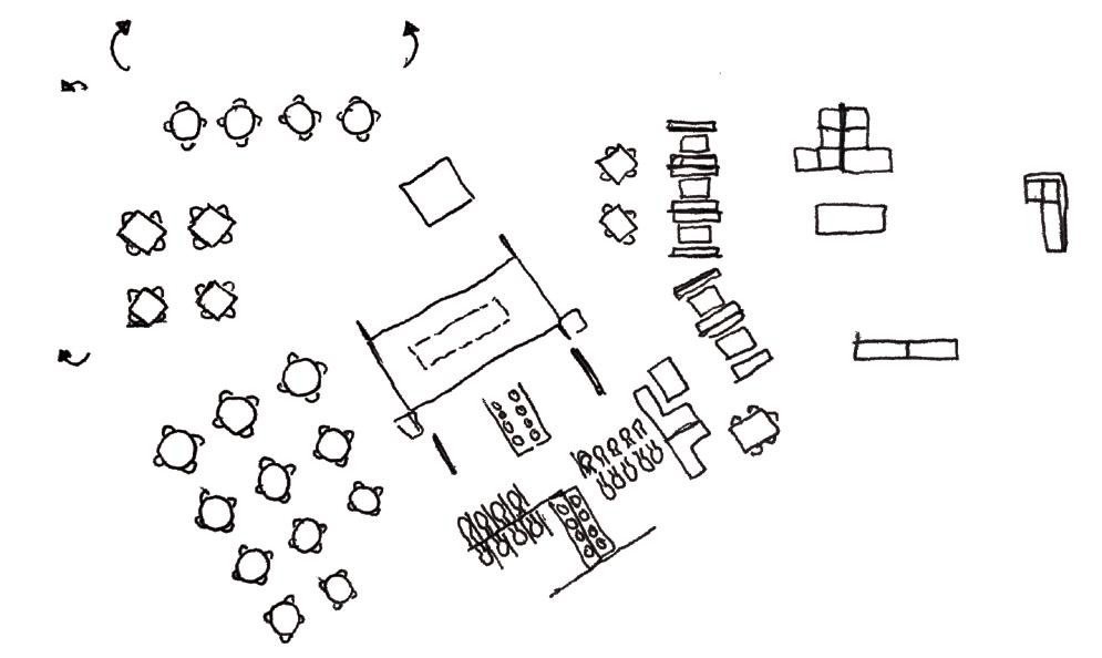central “crash zone” highlighted in yellow, a space for random social encounters
