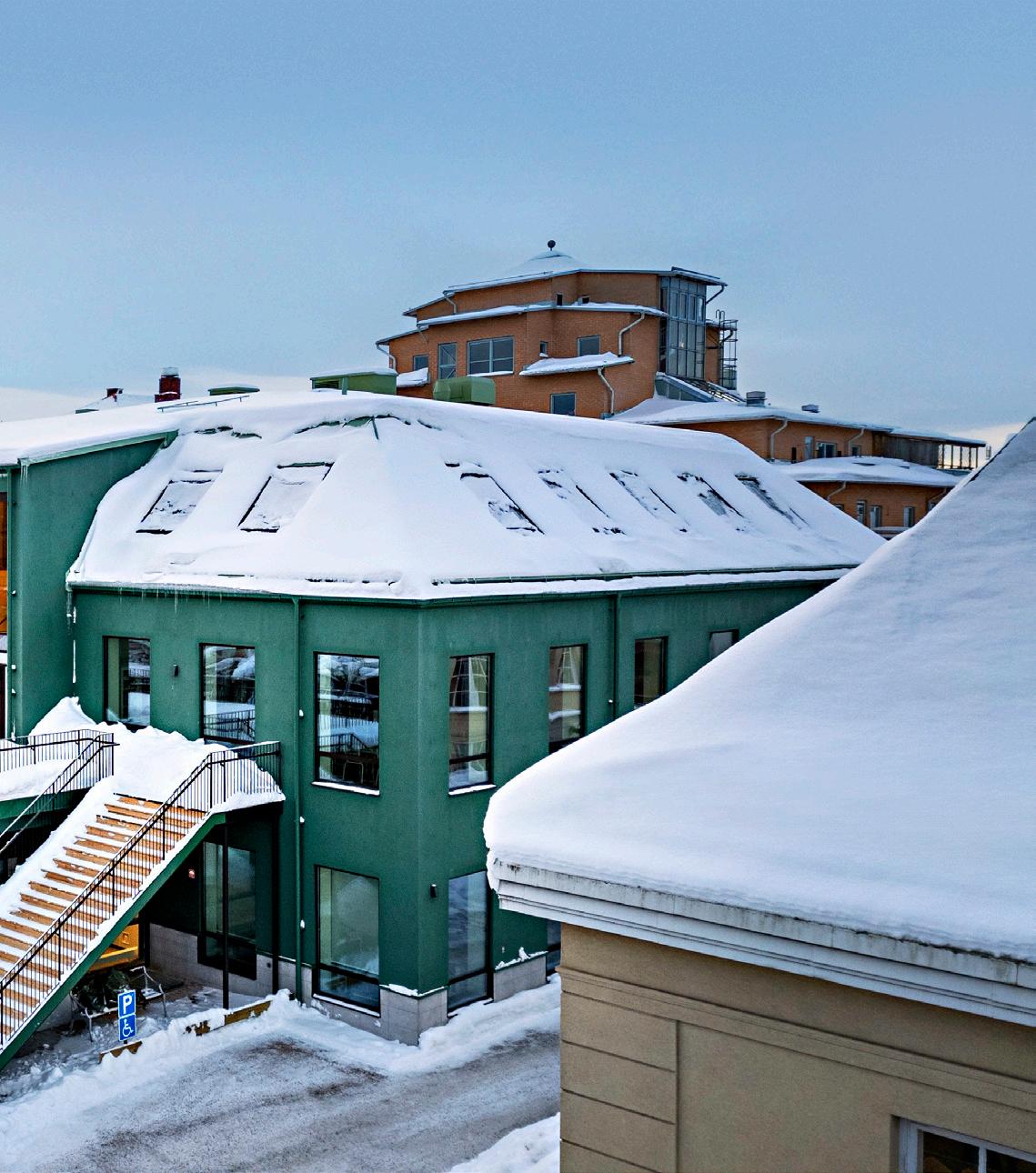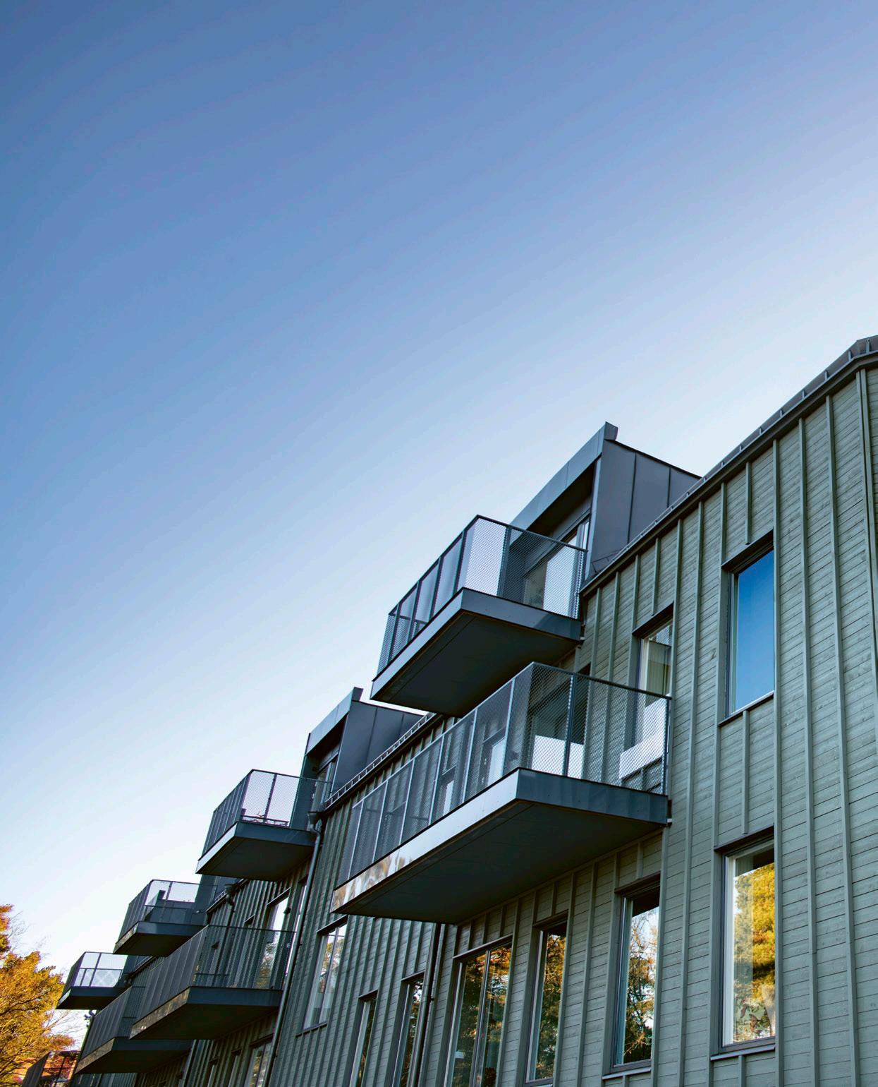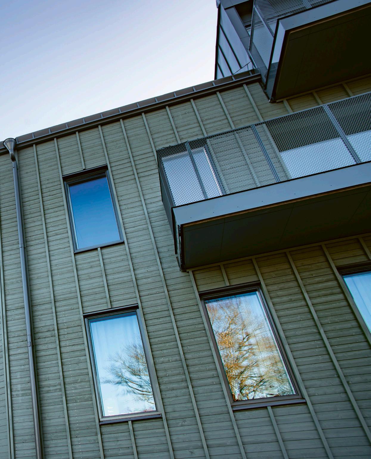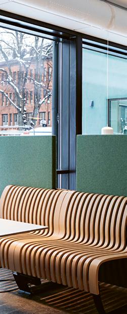 Bland våra kunder märker vi ett stort intresse från skola, offentlig verksamhet samt företag som bygger nya fabriker och kontor. Här i magasinet kan du läsa om tillbyggnaden av Vasaskolan i Gävle. Den smälter in på ett naturligt sätt i den gamla bebyggelsen vilket var ett viktigt mål. Trästommarna ger en behaglig miljö för alla som vistats i skolans lokaler. Vi har även besökt Permobil i Sundsvall, ett synnerligen genomtänkt fabriksoch kontorsbygge med hybridstomme. Kombinationen av olika material i stommen är ett utmärkt exempel på hur bästa effekt vad gäller funktion, ekonomi och klimathänsyn kan uppnås. Trä har en given plats, bland annat i trapphuset i ljusgården.❋