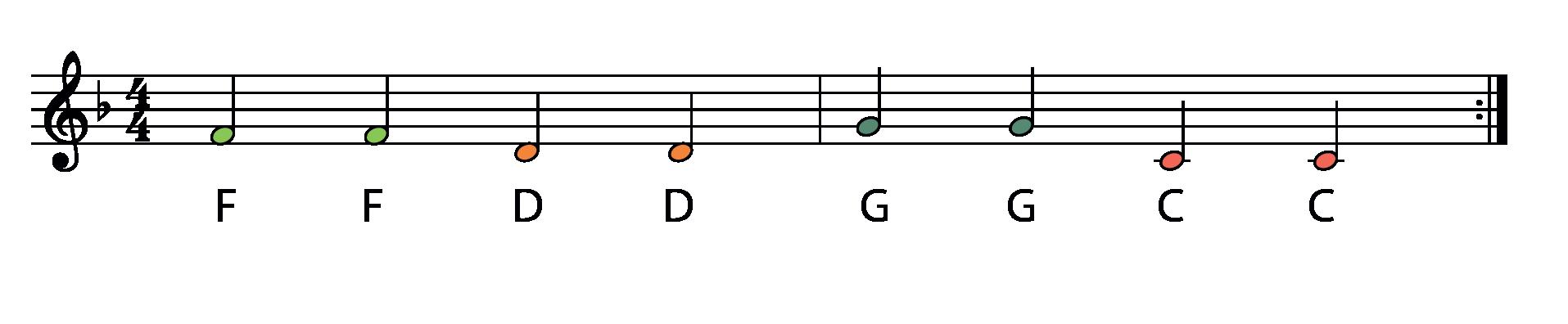 Det här är en omvänd version av “Här är vårens första fluga”. Melodin går neråt i stället för uppåt när flugan somnar. Se till att du täcker hålen helt med fingrarna. Nu kan du spela alla tonerna i C-durskalan!
