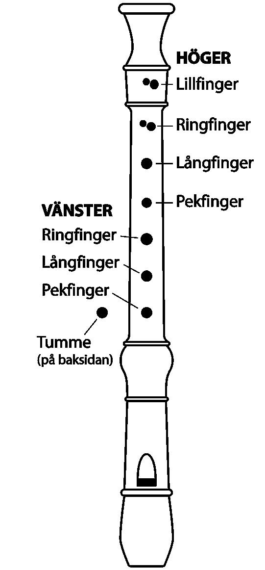 • Känn efter att du täcker fingerhålen helt med fingrarna