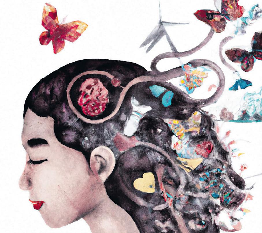Kysyimme nuorilta, millaisena he näkevät tulevaisuuden, ja annoimme tekoälyn tehdä siitä kuvan. Tässä kuvassa on 15-vuotiaan Alisan ajatuksia.