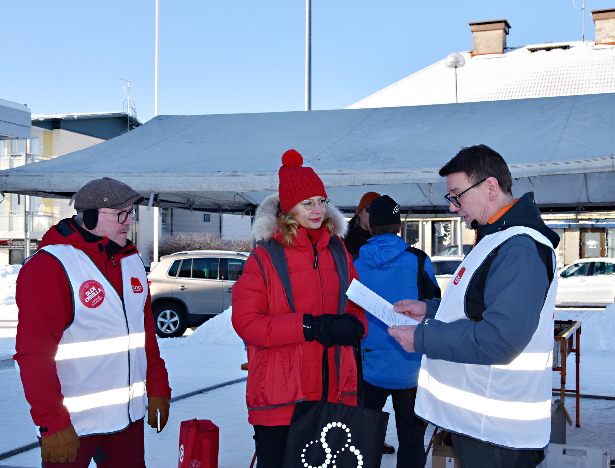 Eurooppa- ja omistajaohjausministeri Tytti Tuppurainen vieraili Oulaisissa SDP:n eduskuntavaaliehdokas Juhani Löfbackan vaalitilaisuudessa.