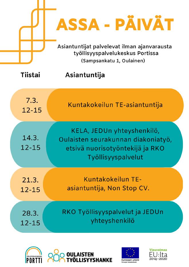 Ylivieska 15.4.-16.4. & 22.4.-23.4. Raahe 12.6.-15.6. Utajärvi 12.8.-13.8. & 19.8.-20.8. Haapajärvi 21.10.-22.10. & 28.10.-29.10.