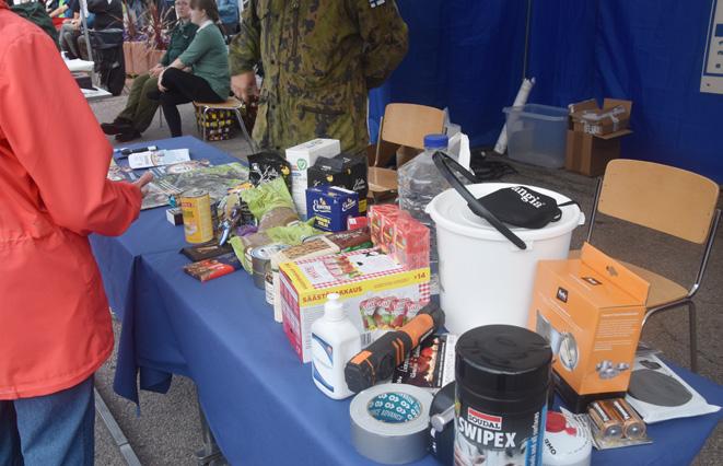 Tapahtumassa esiteltiin muun muassa sitä, mitä elintarvikkeita ja apuvälineitä kaikissa kotitalouksissa pitää olla kriisitilanteiden varalta. Kuva: Aleksi Olli