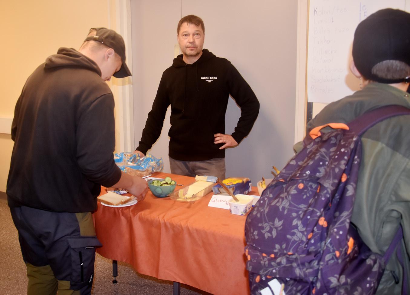 Koulunuorisotyöntekijä Jani Oja tarjoamassa nuorille aamupalaa