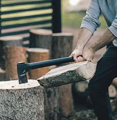 Keskikokoisten, 20-30 cm paksujen pöllien halkaisuun.