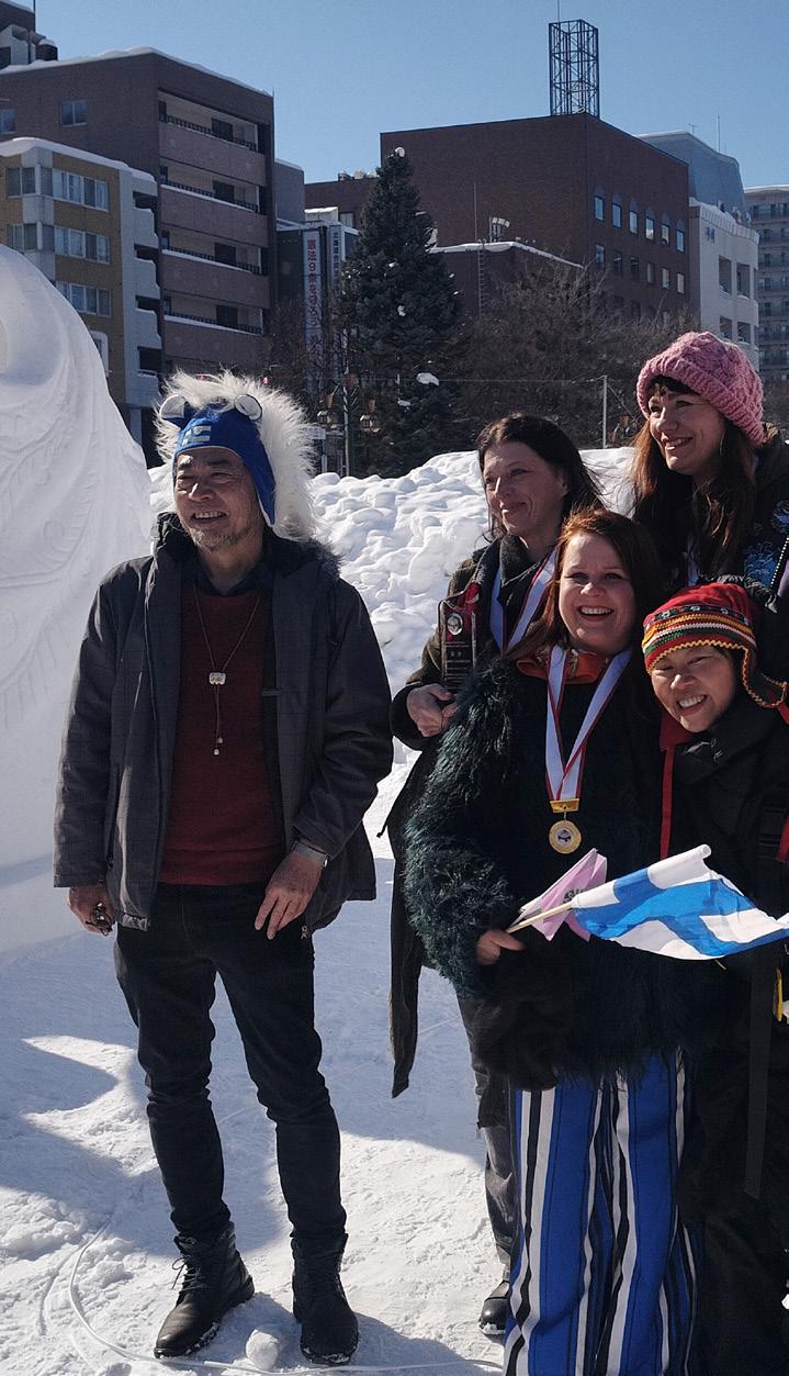 Anna Koivukankaalla on vuosien kokemus lumen- ja jäänveistosta: hän edusti Suomea Sapporossa nyt kolmatta kertaa. Jonna Taikatielle lumenveisto on uusi aluevaltaus taiteen tekemisessä. Taiteilijat ovat