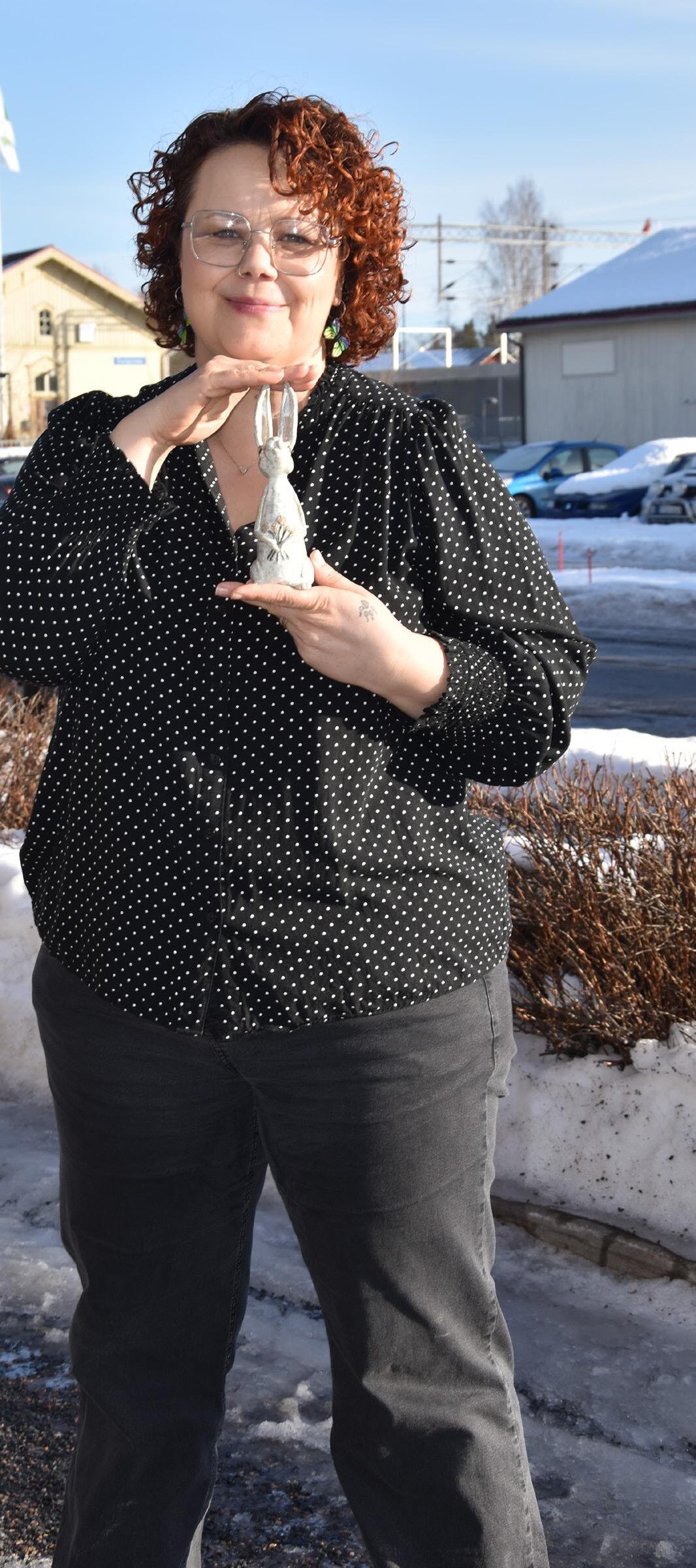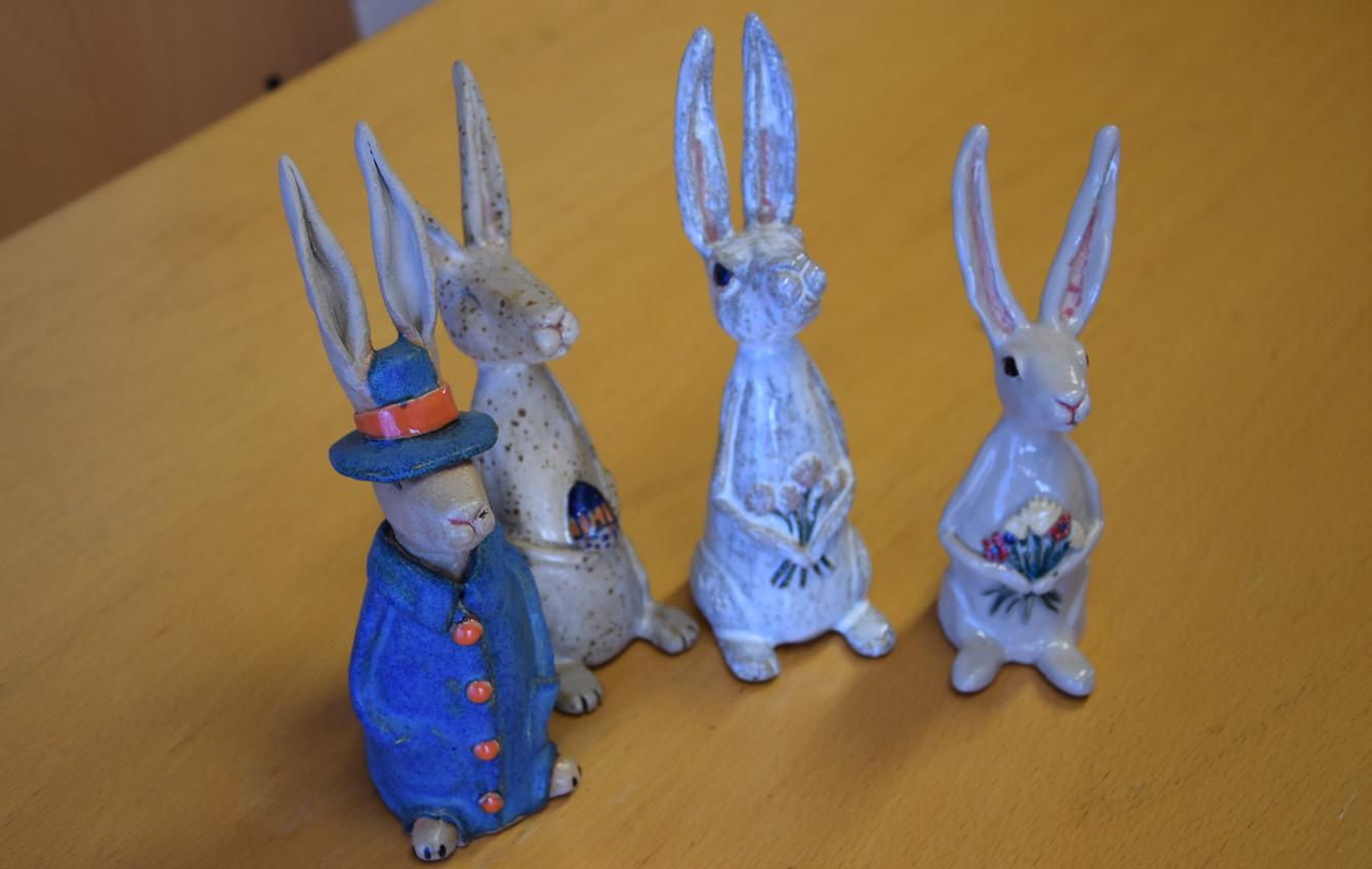 janmaan hyvinvointialueen työntekijöiden vapaa-ajanjärjestö Vapari ry:n keramiikkaryhmään. Taitojen karttuessa on Hakala alkanut tehdä keramiikkatöitä hänelle erityisen rakkaasta aiheesta, pupuista. Hänen keramiikkapupujensa hauska yksityiskohta on hatun läpi menevät korvat.
