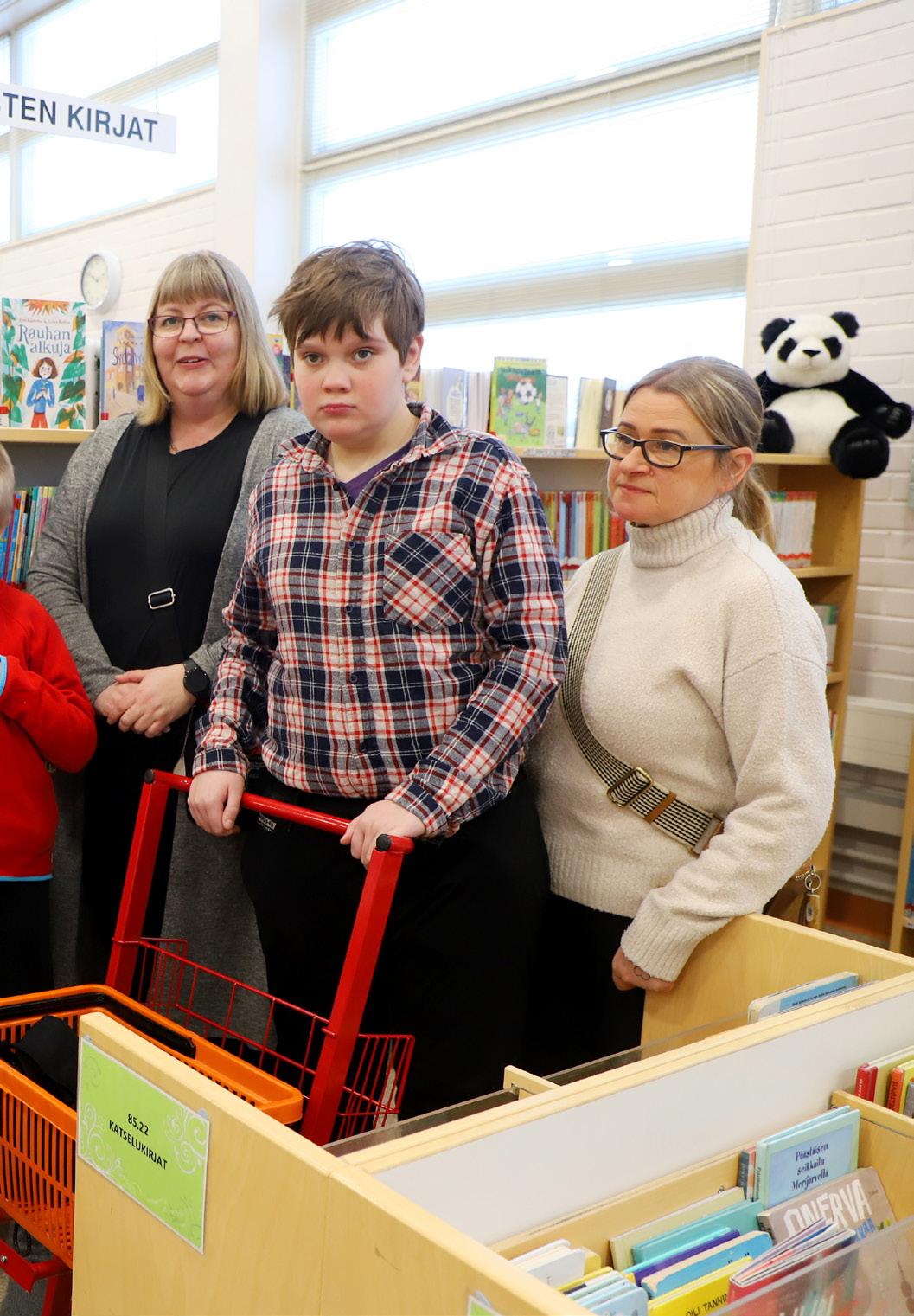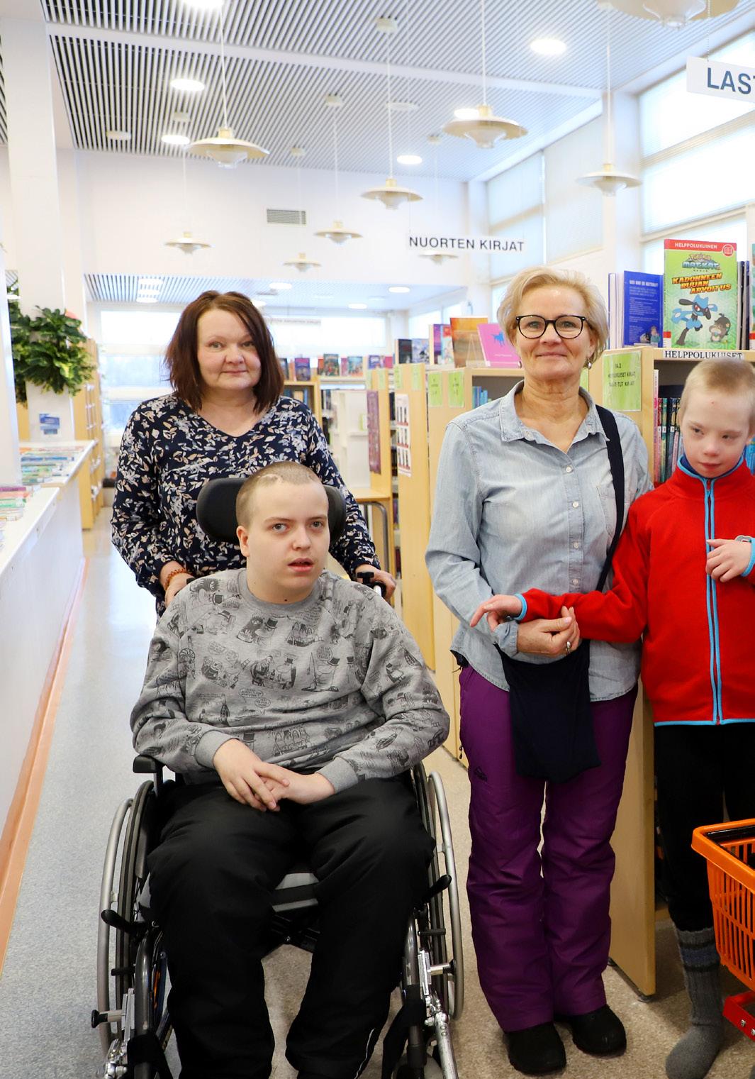 KIRJASTOKÄYNNIN pienryhmä tekee aina tiistaisin kello yhdeksän jälkeen aamulla. Vaikka vierailu ajoittuu yleensä omatoimiaikaan, saa ryhmä tarvittaessa apua henkilökunnalta.