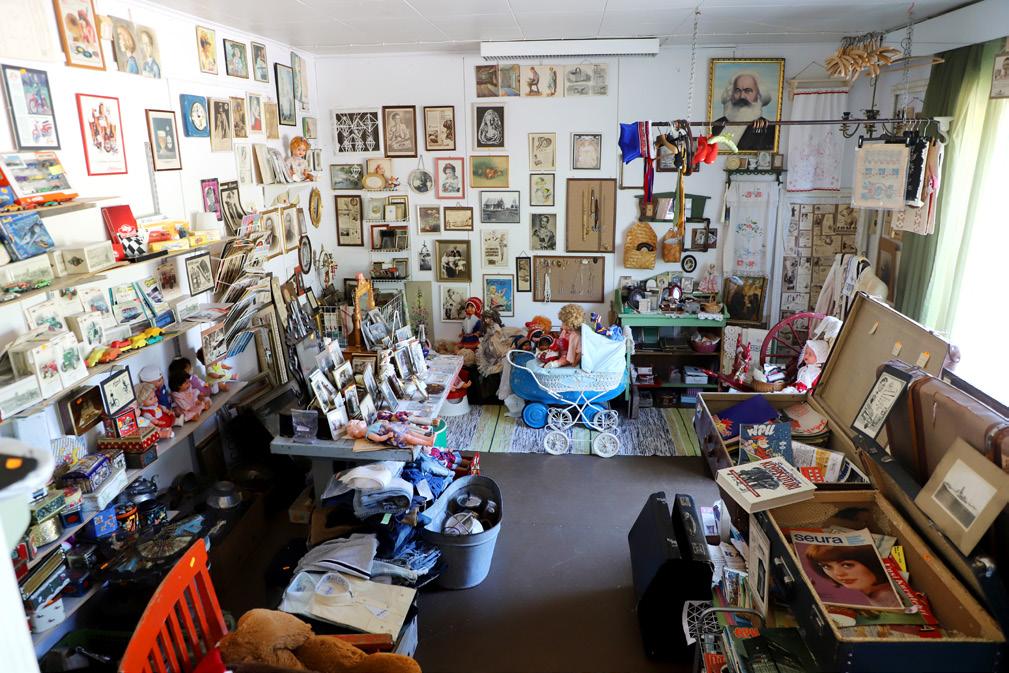 Ja kun katselee Kuotesahon kirpputorin hyllyjä, voi heti huomata, mitä hän äskeisellä lauseellaan tarkoittaa. Tällaista esineistöä ei muualta löydy. Kuotesaho