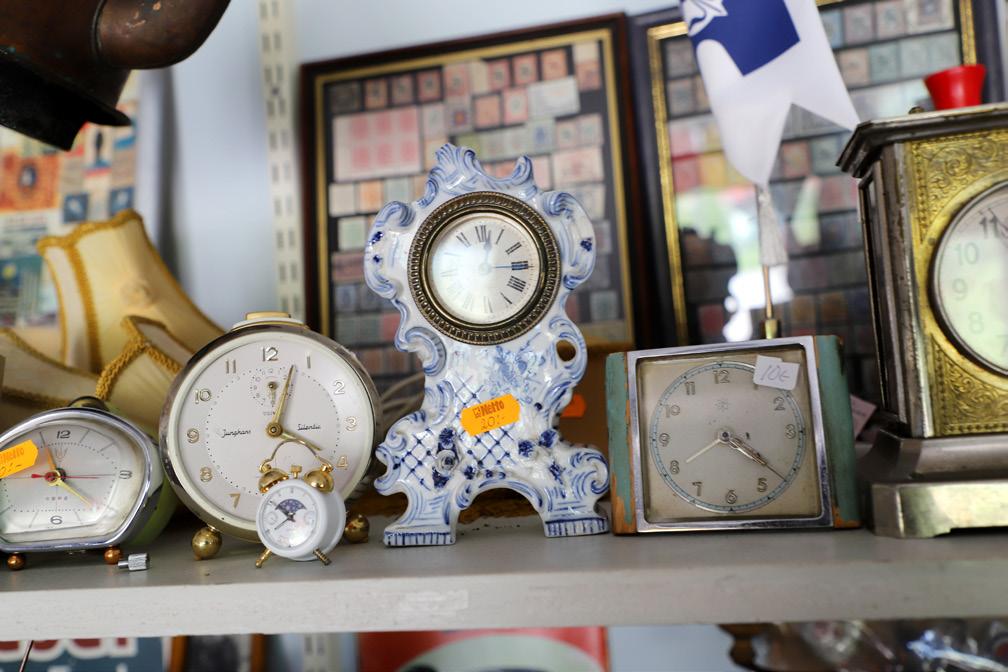 KELLOKOKOELMA jatkuu varsinaiselle kirpputorin puolelle saakka. Mikael Kuotesaho tunnustaa, että hän taitaa olla hieman ”kellohörhö”. Samalla hän esittelee noin satavuotiasta morsiuskelloa, joka nimensä mukaisesti annettiin siihen aikaan nuorelle parille häälahjaksi.