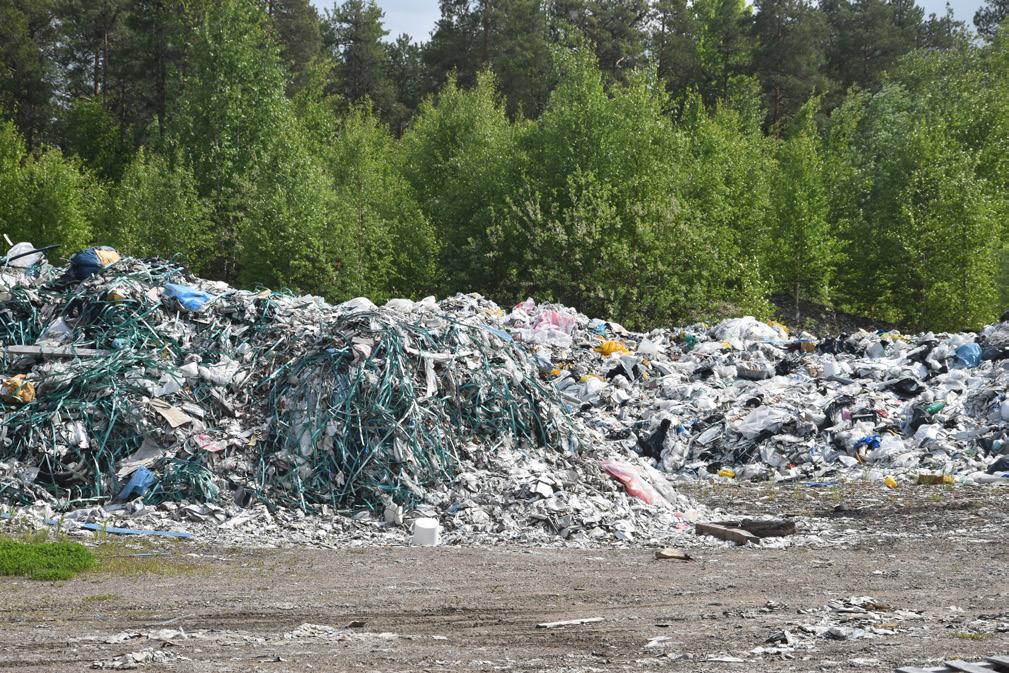 Ahokallion teollisuusalueella lojuvat jätevuoret kuuluvat Oulaisten Jätehuolto Oy:lle, joka ei kuitenkaan enää harjoita jätteenkuljetusta. Kuva: Aleksi Olli