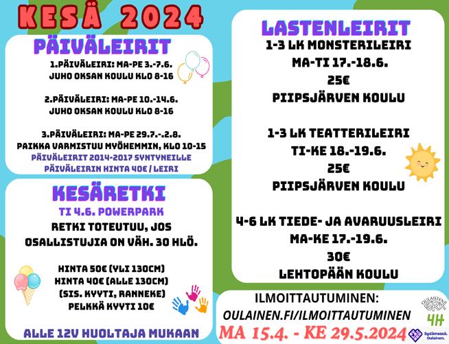 LAUANTAINA 18.5.2024 KLO 16:00-19:00 PETÄJÄSKOSKEN NUORISOSEURANTALOLLA