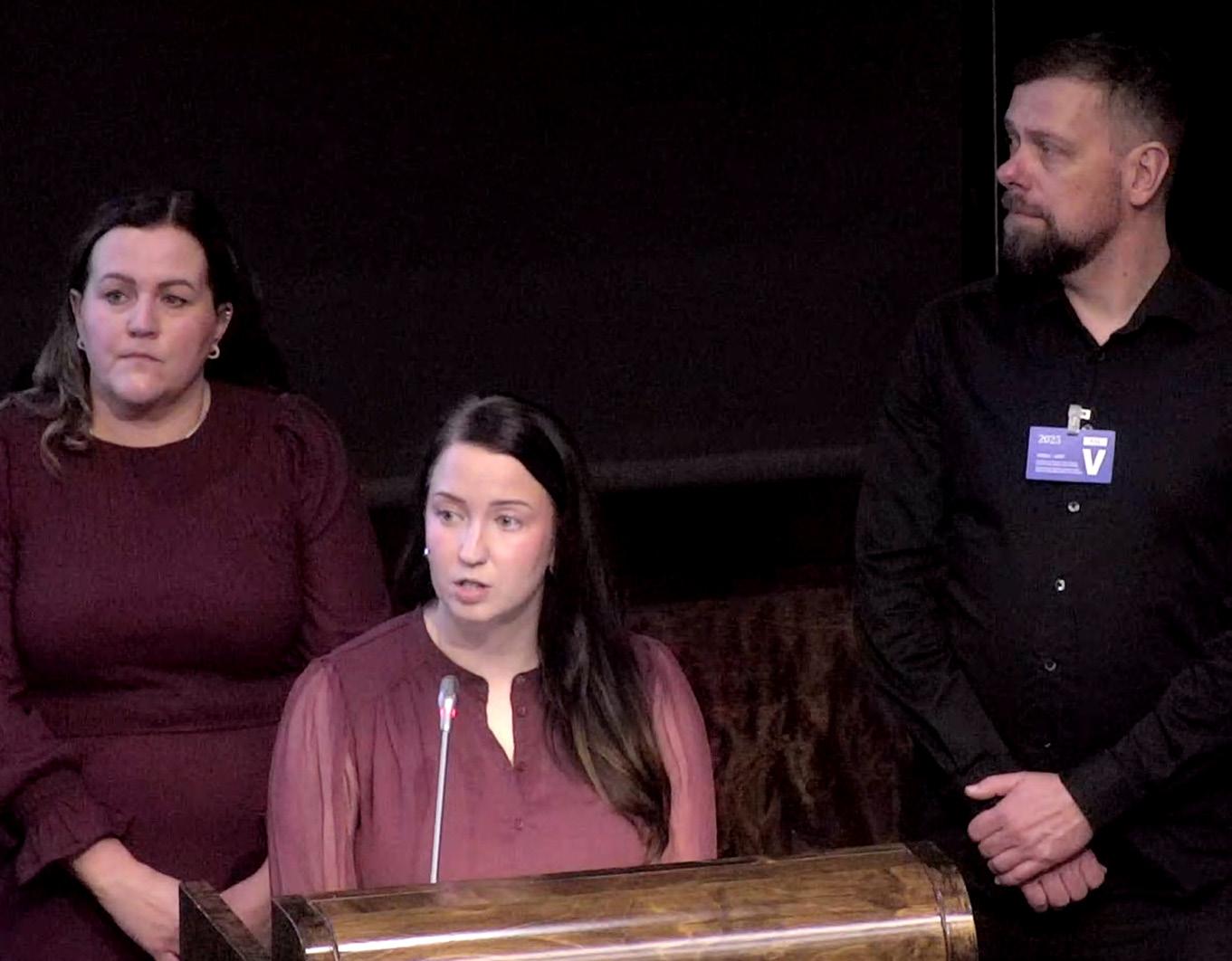 Oulaskankaan yöpäivystyksen säilyttämisen puolesta tehtyä kansalaisaloitetta eduskunnan sosiaali- ja terveysvaliokunnalle. Kuvakaappaukset: Eduskunnan livelähetys