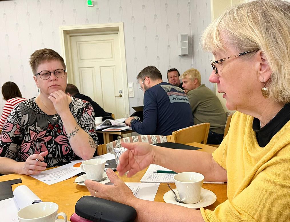 Tuula Aitto-oja (oik.) Wanhasta Woimasta ja Oulaisten 4H-yhdistyksen puheenjohtaja Päivi Jokinen suunnittelevat tulevaa.