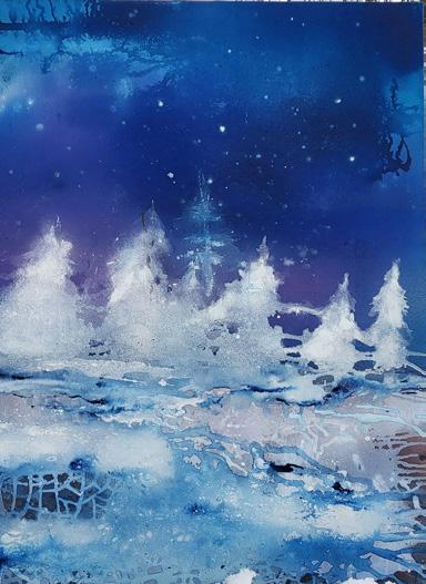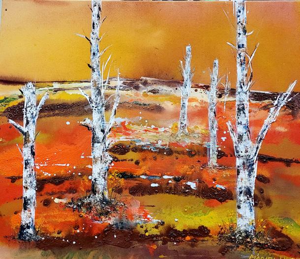 Muun muassa nämä maalaukset ovat Maritta Lindbergin näyttelyssä