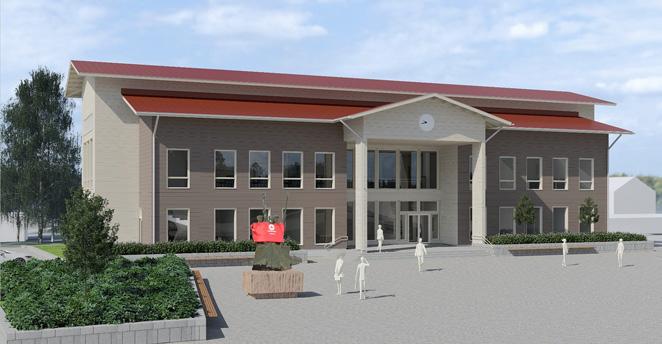 Tässä havainnekuva uudesta kunnantalosta, jonka on määrä valmistua viimeistään kesällä 2027.