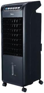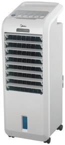 Tuuletinjäähdytin, jossa kolme puhallinnopeutta, led-näyttö ja kaukosäädin. Täytettävä 6 litran vesisäiliö. Ilmankostutus tehostaa puhalluksen viilennystä.