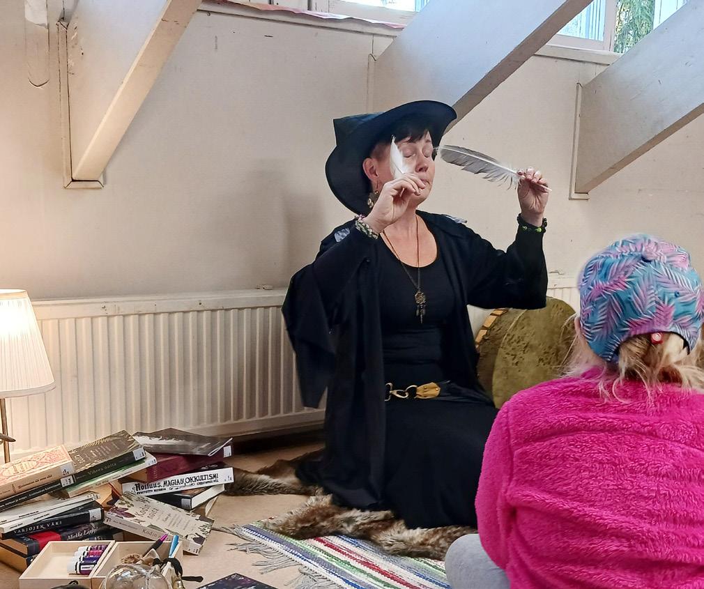 Kristiina Jaakola opettamassa noituutta lapsille.