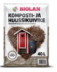 Biolan Komposti- ja huussikuivike on puhtaasta havupuun kuoresta, puukuidusta ja sammaleesta valmistettu kuivattu seosaine kompostointiin ja kuivakäymälöihin. Se ei sisällä turvetta.