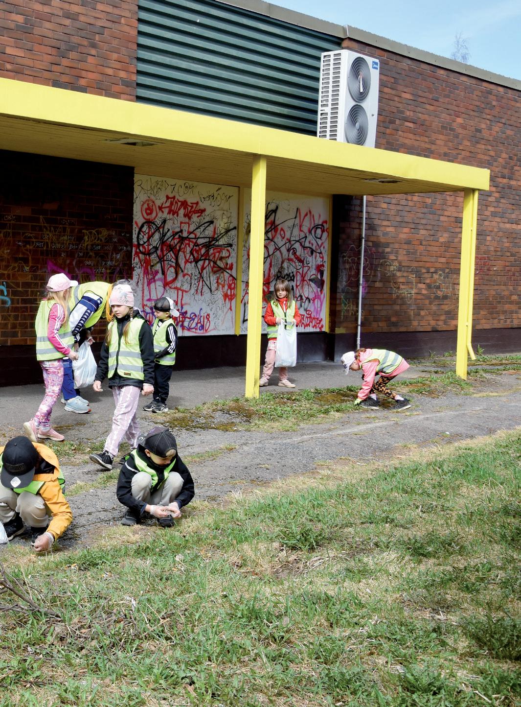 LASINSIRUT eskarit jättivät suosiolla toisille kerääjille. Päivän tuloksena oli kolme täyttä kauppakassillista roskia. Tiina Kukkonen kertoo, että he ovat puhuneet luokassa paljon siitä, mitä kaikkea kevät tuo tullessaan. Yksi näistä asioista on roskien ilmestyminen katuku-
