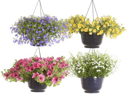 Useita eri kasvupaikkoihin soveltuvia helppohoitoisia kukkivia amppelikasveja.