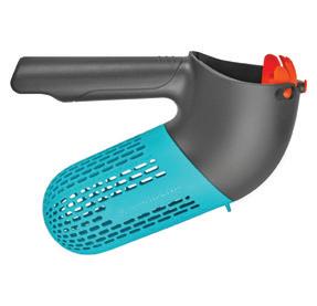 DISP GARDENA Kätevä combisystem-sarjan marjapoimuri puutarhan marjojen keruuseen. Kääntyvä hammastus: kapea marjojen, kuten herukoiden ja pensasmustikoiden keräämiseen, ja leveä väli esim. luumarjojen poimintaan.