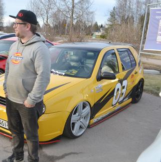Kuvassa Ali Koutonen ja Samu Alila. Samun VW Golf menee pääsiäisenä. Erikoisuutena autossa on porchenkeltainen väri