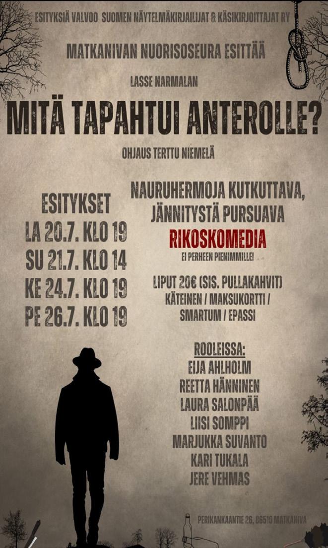 NÄYTÖKSET: to 1.8. klo 19.00 pe 2.8. klo 19.00 su 4.8. klo 16.00 to 8.8. klo 19.00