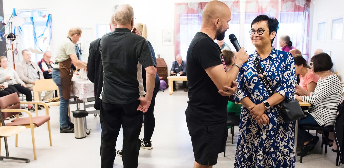 Kahvien yhteydessä on mahdollisuus vaihtaa kuulumisia vaikka Oulaisten kaupunginjohtaja Riikka Moilasen kanssa.