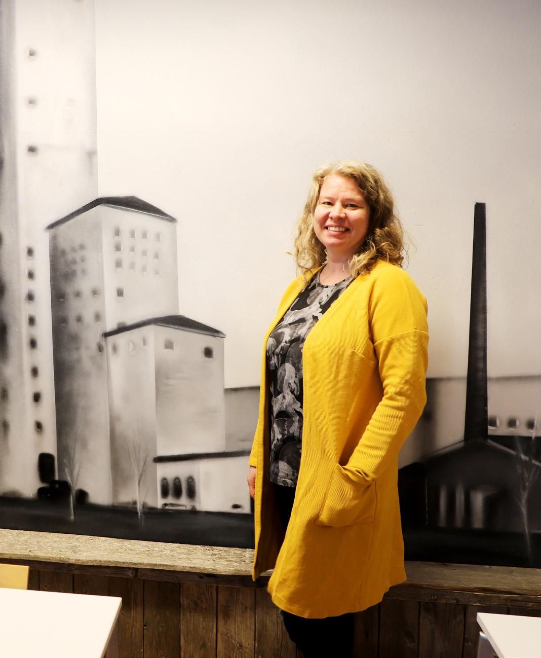 ”Kun tulin tähän tilaan ensimmäistä kertaa, oli seinällä virallisia valokuvia kaivoksesta. Sain heti idean, että tuollainen kuva täytyy saada tähän seinällekin”, kertoo Tiina Ruokamo.