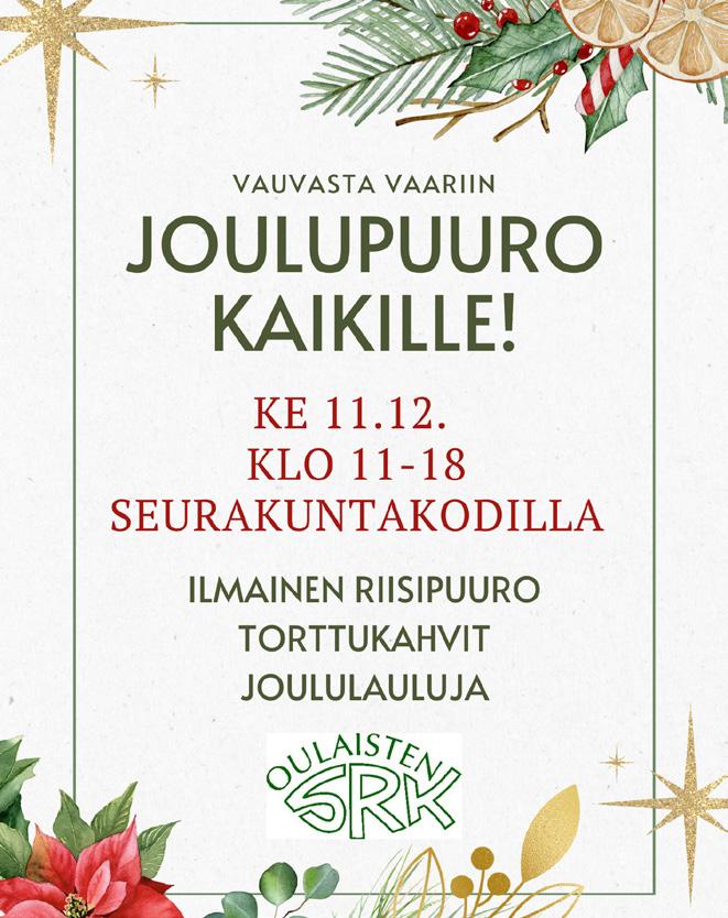 OULAISTEN yläkoulun salissa järjestettiin perinteinen joulubasaari viime lauantaina. Joulubasaarissa oli tänä vuonna tavallista vähemmän osallistujia. Monia harmitti, kun oppilaat eivät enää osallistu järjestämiseen, ja se on vähentänyt tapahtuman vetovoimaa. Erityisesti lapset ja lapsiperheet olisivat halunneet lapsille ohjelmaa, kuten kauhukellarin. Kuitenkin pienestä kävijämäärästä huolimatta tapahtumassa oli iloinen ja