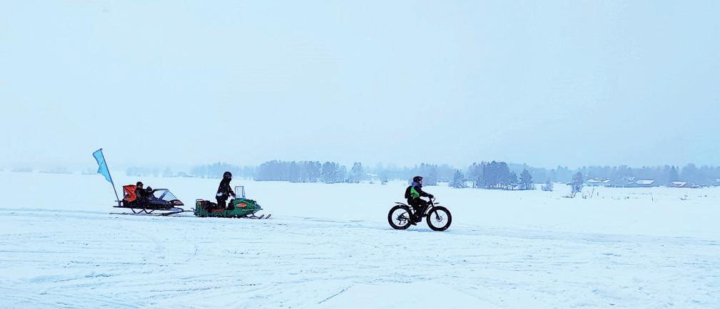 Järven jäällä pääsi liikkumaan Veteraanimoottorikelkan kyydillä ja Oulaisten liikuntapalveluiden sähköpyörillä.