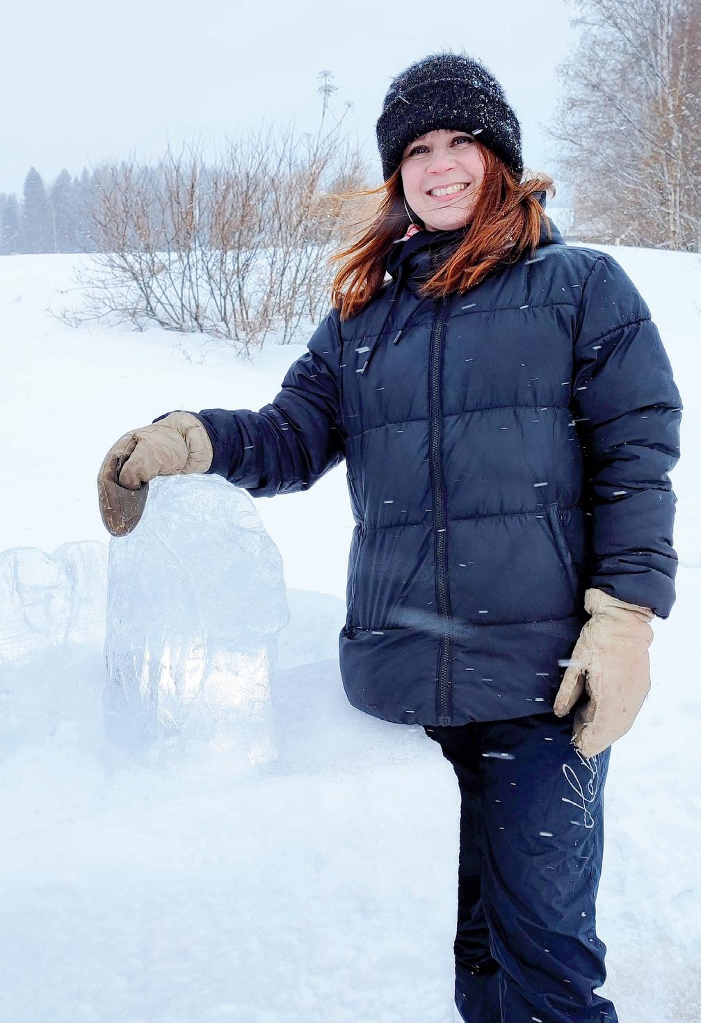Jonna Taikatie toimi apuohjaajana jäänveistokurssilla. Tänä vuonna harrastuksen aloittanut Jonna on ehtinyt osallistua jo kisoihinkin Kalajoella sijoittuen hienosti heti hopealle.
