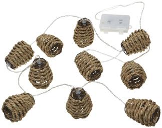 Paristokäyttöinen rottinkivalosarja sisä- ja ulkokäyttöön. Kirkas johto ja 10 lämpimän valkoista lediä rottinkikoristeella. Valosarjan pituus 1,75 m + 0,5 m liitosjohto. Paristot 3 x AA eivät sisälly pakkaukseen.